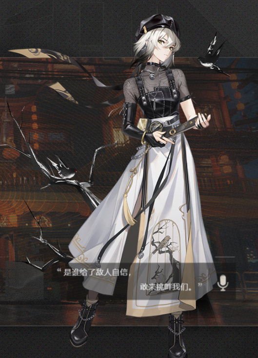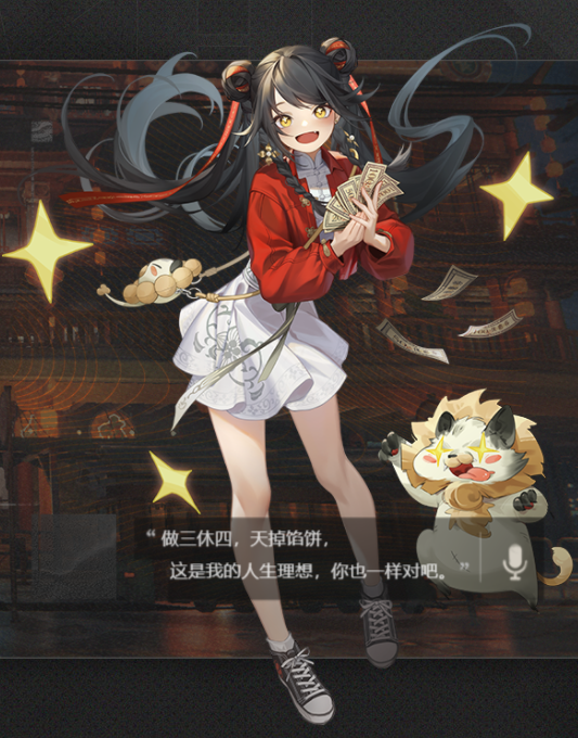 “羽林护卫军”中手持唐刀、英姿飒爽的女教官。她的战斗风格向来干脆利落、简单粗暴,就像她的性格一样直爽明快。工作之外,星牧也对养生颇有研究,腰上常备一壶温热养生茶,还会推拿按摩。