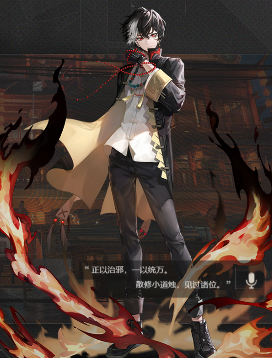 烛是蜃楼特聘职员,实力极为强劲的风水师,他自幼跟随师门修习道法术数。这位青年给人的第一印象是孤僻寡言,但熟识之后,烛也会流露出面冷心热的一面,比如提供一些免费看手相之类的服务。另外,尤其需要提及的是,或许是因为常年远离尘世居于山中,烛在生活常识方面有些欠缺——如果你看到他停在某个便利店的货架前来回翻方便面的包装袋,或者忽然对驶过身边的有轨电车一脸戒备,请不要放在心上。对于烛来说,于红尘中炼心,也是一项漫长的修行。