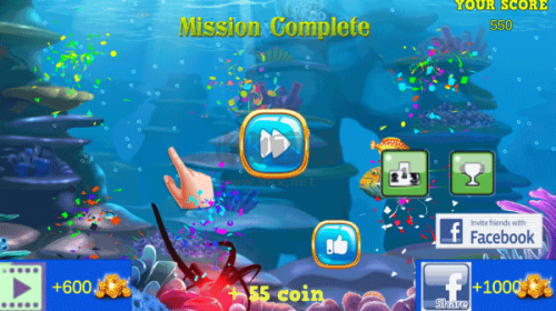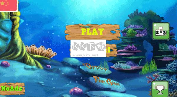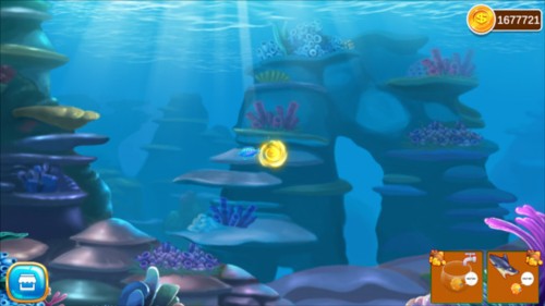 3、画面:2D游戏画面描绘了深海中的游戏场景,画面场景刻画非常精美。水下的各种珊瑚、贝壳、沉船、漂浮的水泡呈半透明状,是本来2D的场景产生了真实的进入深海的感觉。鱼类制作栩栩如生,配合着海水的浮力感觉非常真实。