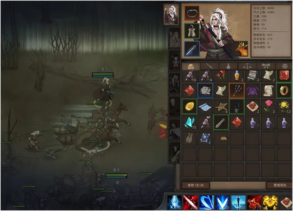 在图中,我的剑豪只带了一个大红药,进入战斗,假如此时我被敌人打残,那么此时我可以按下药品的快捷键,然后在战斗中打开背包,可以看到所有部队都停止了行动。