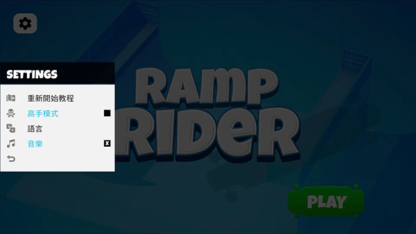 1、打开坡道滑板游戏最新版,进入游戏主界面,首先我们选择左上角的【齿轮】图标进入设置界面,