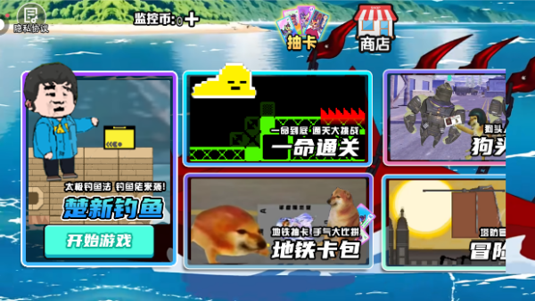 1.很多种不同的鱼儿,收集它们到图鉴中,用积分来不断升级装备