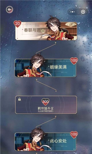 特别说明:并非全部关键选择都指向同一男主才能开启对应男主的【个人线】,只需确保他在聿城居民的心中更为特殊即可。