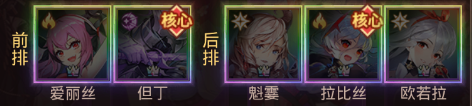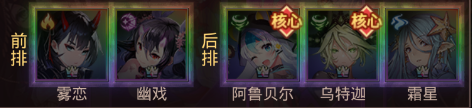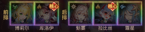 前排:博莉尔、雾恋(无雾恋可换巴哈姆特) 后排:阿鲁贝尔、尤娜、海拉(无尤娜可换霜星,海拉可换拉比丝)