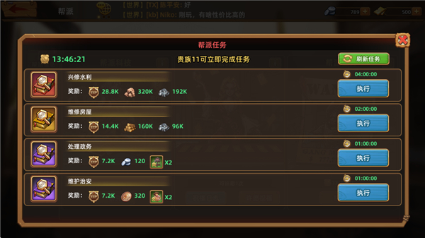 3、在商城购买超值礼包或者击败野外首领都能提供【帮派礼物】,所有统领都可以领取丰厚的奖励。