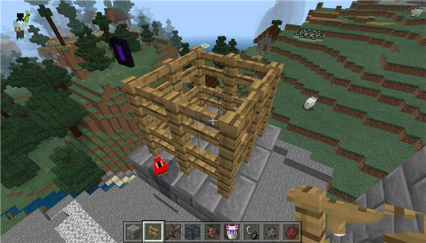 5.然后我们把这个刷怪笼放在柱子上面;