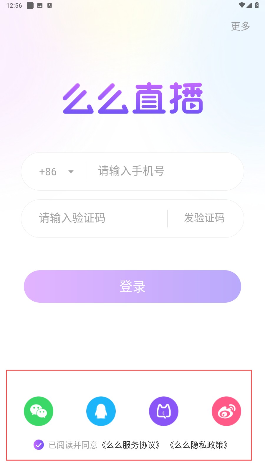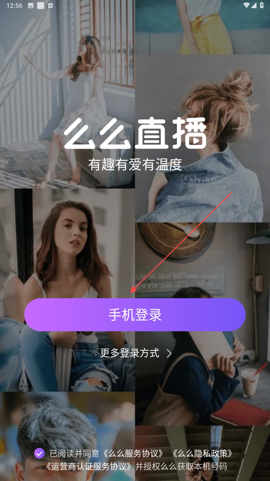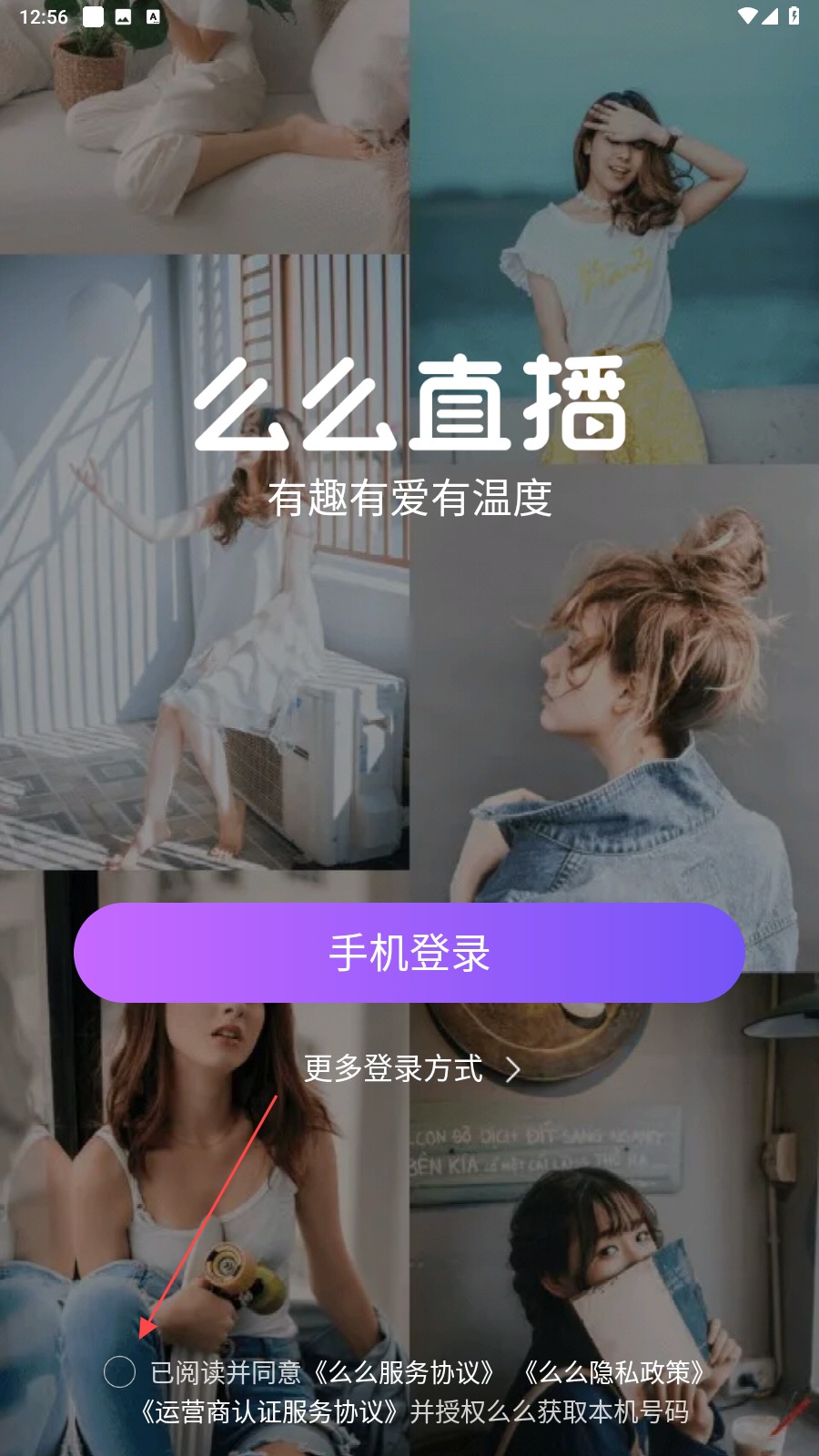 1、进入么么直播后,点击【圆圈】我已同意并阅读