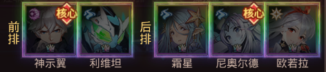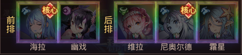 前排:博莉尔、雾恋(无雾恋可换巴哈姆特) 后排:阿鲁贝尔、尤娜、海拉(无尤娜可换霜星,海拉可换拉比丝)