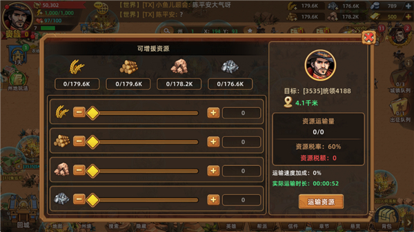 A:游戏内资源有粮食、木头、石头、铁矿,主要通过城内资源田的建设收集以及州地地图的资源点采集获得。