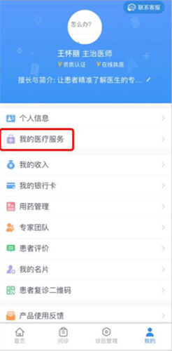 2、进入我的页面,点击“我的医疗服务”选项。